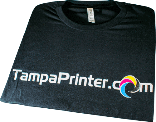 If you’re interested in having a T-shirt printed in the Tampa area, TampaPrinting.com has got you covered. Regardless if you need a single T-shirt or a thousand, Tampa Printing does it all. Get full color printed on the front and back of the shirt with Digital Direct to Garment, with a minimum order of only 1 shirt. Provide your own shirts or use our shirts, we keep a limited stock, but we can get just about any shirt you can envision. V-neck T-shirts, light blend T-shirts, heavy blend T-shirts, dry-fit polo shirts or long sleeve shirts. With our distributor being nearby, if we've get the shirt order by 4 pm then we can have the items in hand, next day.